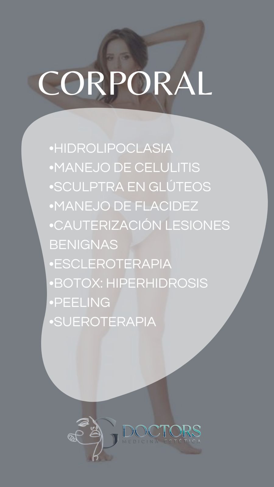 Nuestros Servicios Corporal Facial Capilar Somos un equipo multidisciplinario, con calidad humana 💫 Nuestro objetivo principal es resaltar la belleza de cada paciente. Gdoctors especialistas en Medicina Estética y antienvejecimiento Dra Daniela Granda Colunge Dr Juan Fernando Gaviria Giraldo